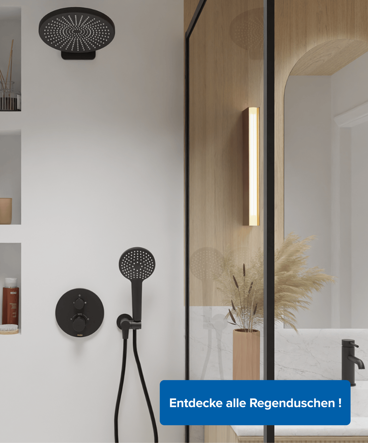 Wähle zwischen Thermostatarmaturen und Mischarmaturen für komfortables Duschen bei der idealen Wassertemperatur.