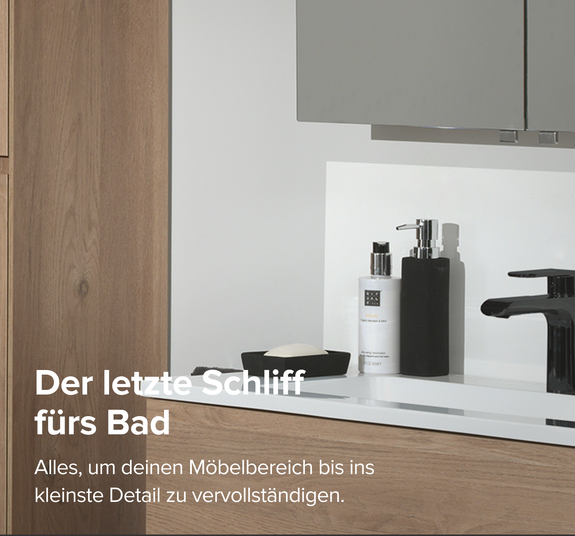 Ein stilvolles Badezimmer beginnt mit dem Möbelstück – aber das Finish macht den Unterschied. Hier findest du alles, was deinen Möbelbereich komplett macht: von praktischen Hochschränken und Spiegelschränken über stimmungsvolle Beleuchtung bis hin zu pflegeleichten Spritzschutzwänden. Auch die technischen Sanitärteile findest du hier. So sieht dein Badezimmer nicht nur schön aus, sondern funktioniert auch perfekt – bis ins kleinste Detail!