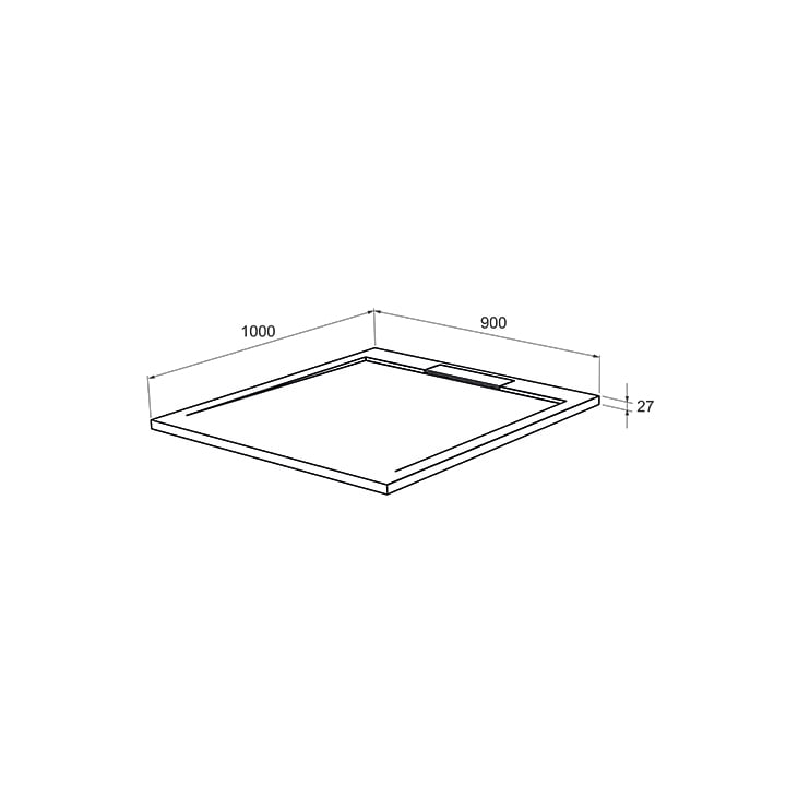 Diese Duschtasse ist mit einer Breite von 90 cm und einer Länge von 100 cm ausgeführt.
