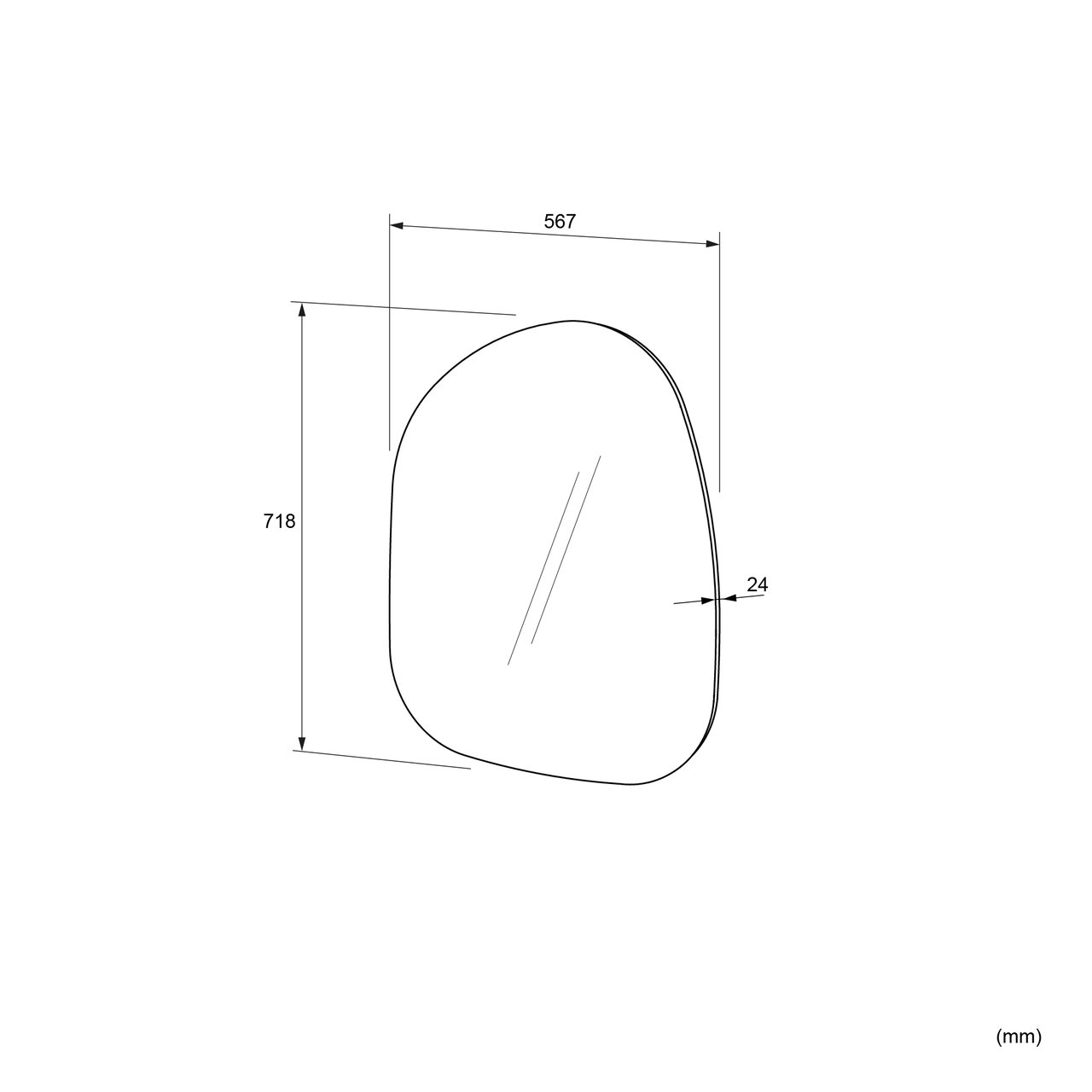 Dieser organische Spiegel hat eine Breite von 58 cm und eine Höhe von 72 cm. Dank seines puristischen Stils passt der LED Spiegel in jedes Badezimmer.