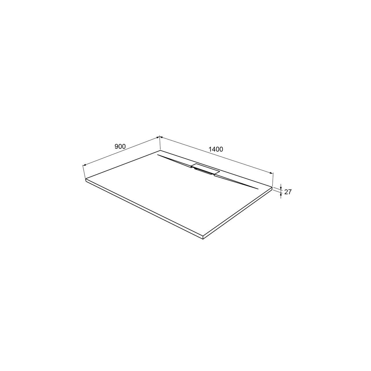Diese Duschtasse ist mit einer Breite von 90 cm und einer Länge von 140 cm ausgeführt.