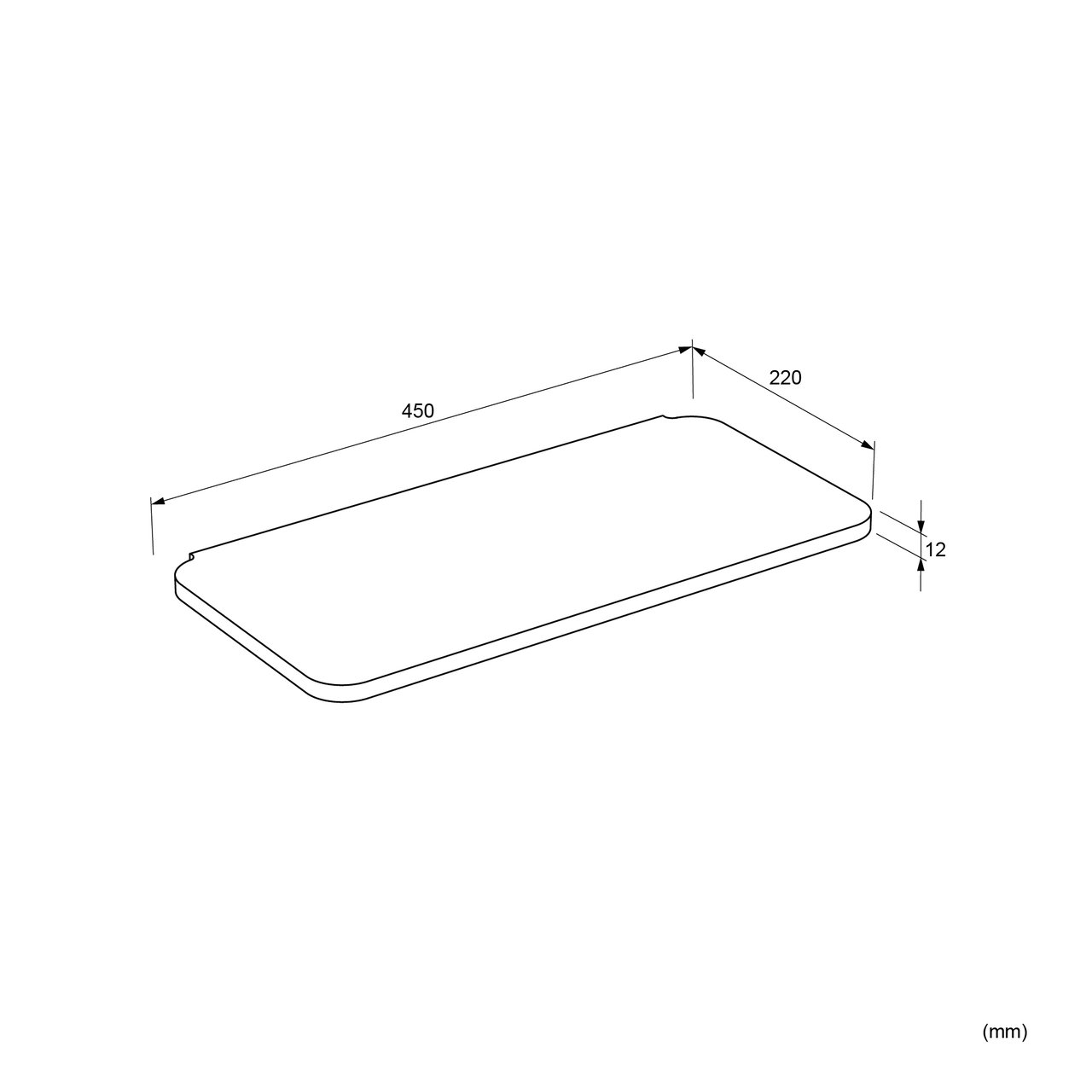 Diese erstklassige Solid Surface-Platte ist 45 cm breit, 22 cm tief und hat eine Randhöhe von 1,2 cm. Die schöne Matt weiße Platte für dein Badmöbel in jedem Badezimmer.