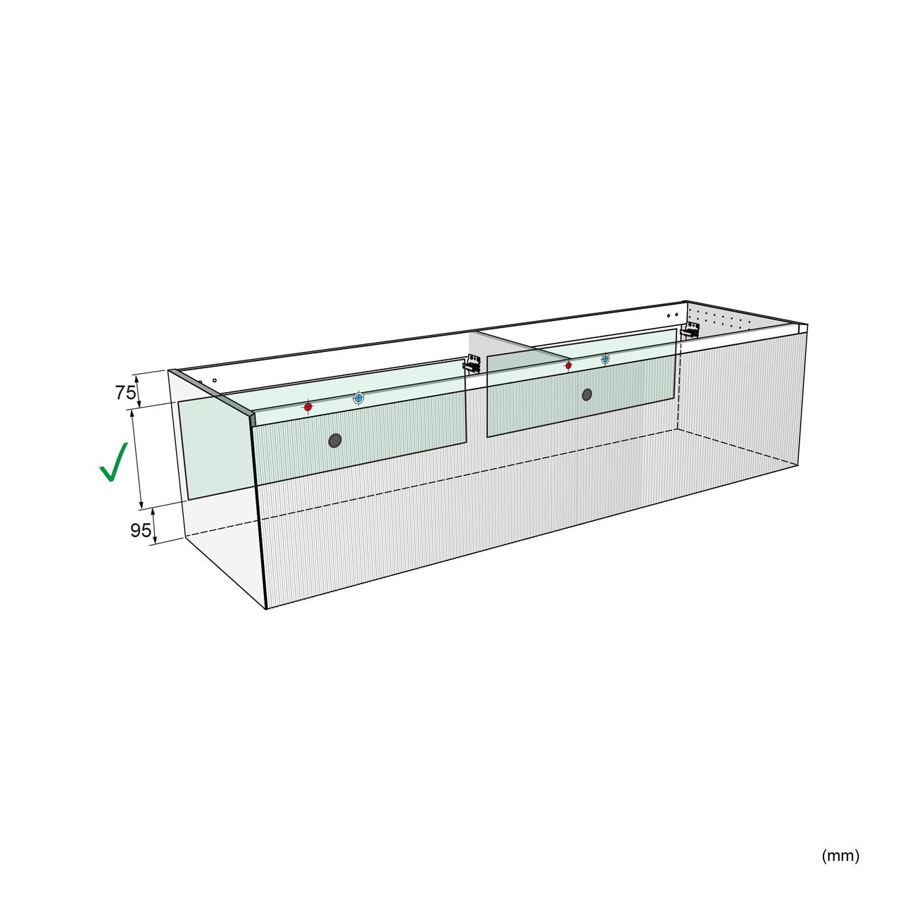 Sicherheitstipp: Für eine perfekte Installation und optimale Unterstützung des Hängeschranks wird die Verwendung eines Santeg Stützprofils empfohlen.