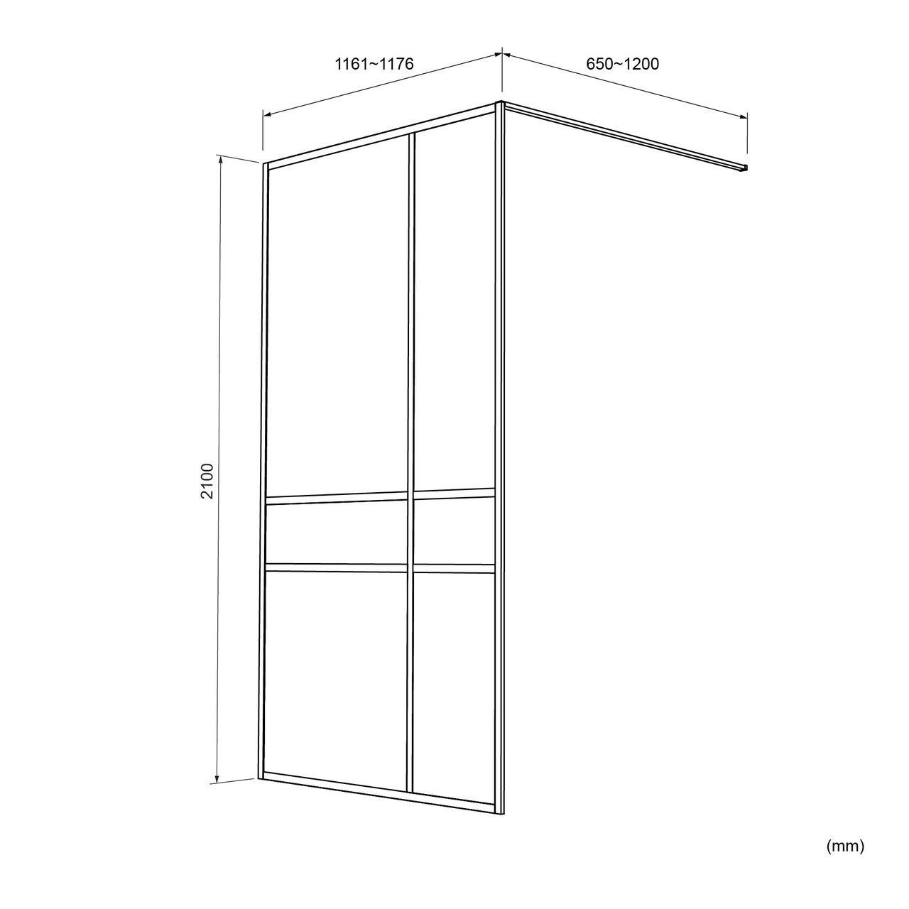 Diese Walk-In-Dusche ist 120 cm lang und 210 cm hoch. Die maximale Tiefe beträgt 120 cm.