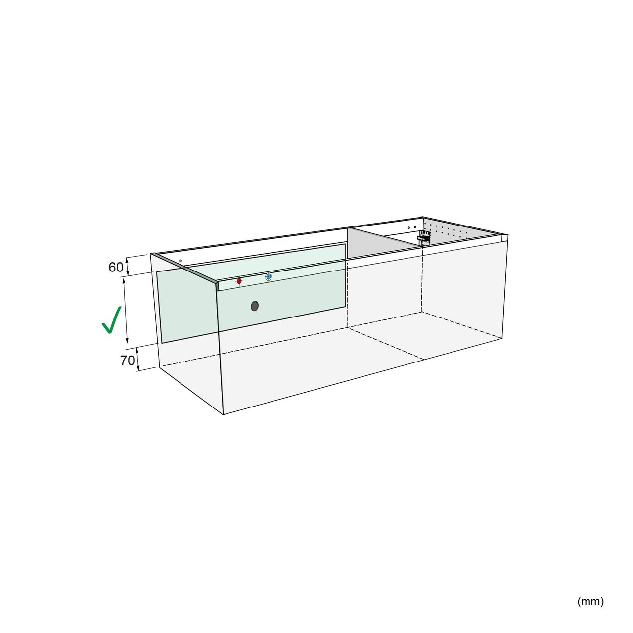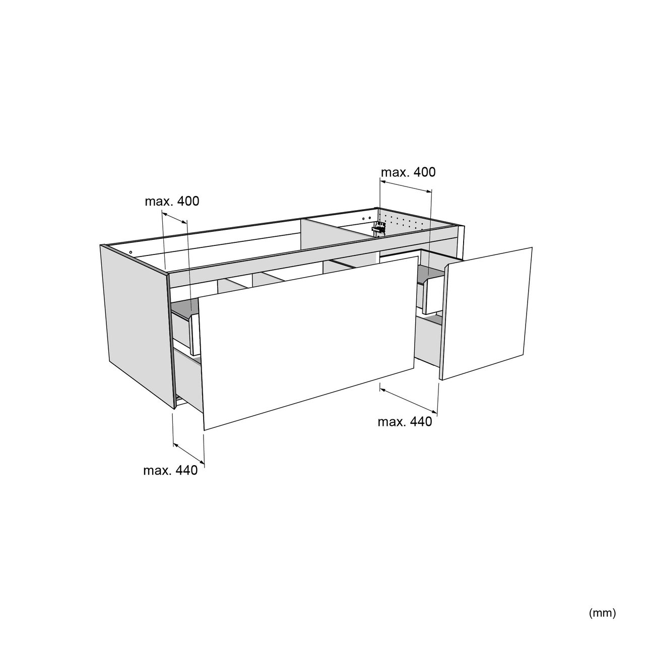 Sicherheitshinweis: Es wird dringend empfohlen, ein Santeg-Stützprofil zu verwenden, um alles perfekt zu montieren und den hängenden Schrank optimal zu unterstützen.