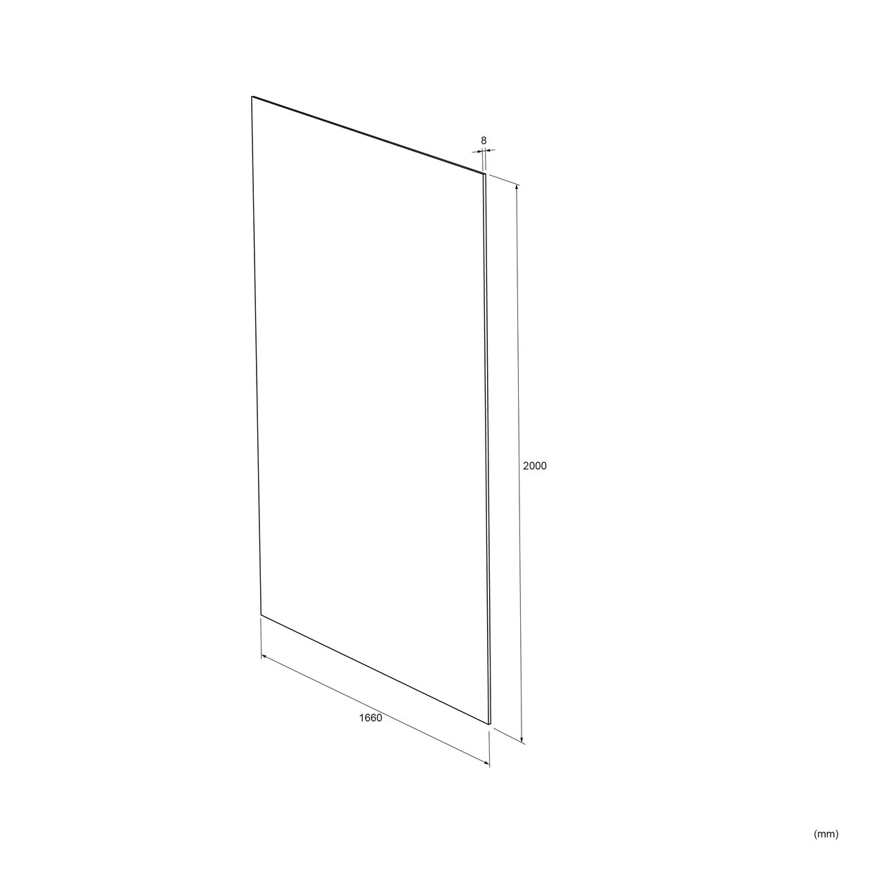Stilvolles und sicheres Glaspaneel zur Vervollständigung einer Walk-In-Dusche. Dieses Glaspaneel ist 166 cm lang, 200 cm hoch und 8 mm dick.