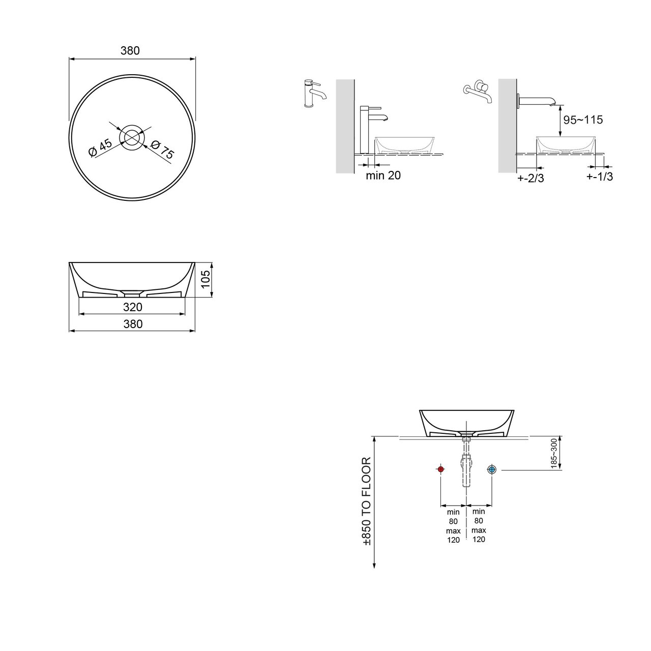 Form des Aufsatzwaschbeckens | Rund | |