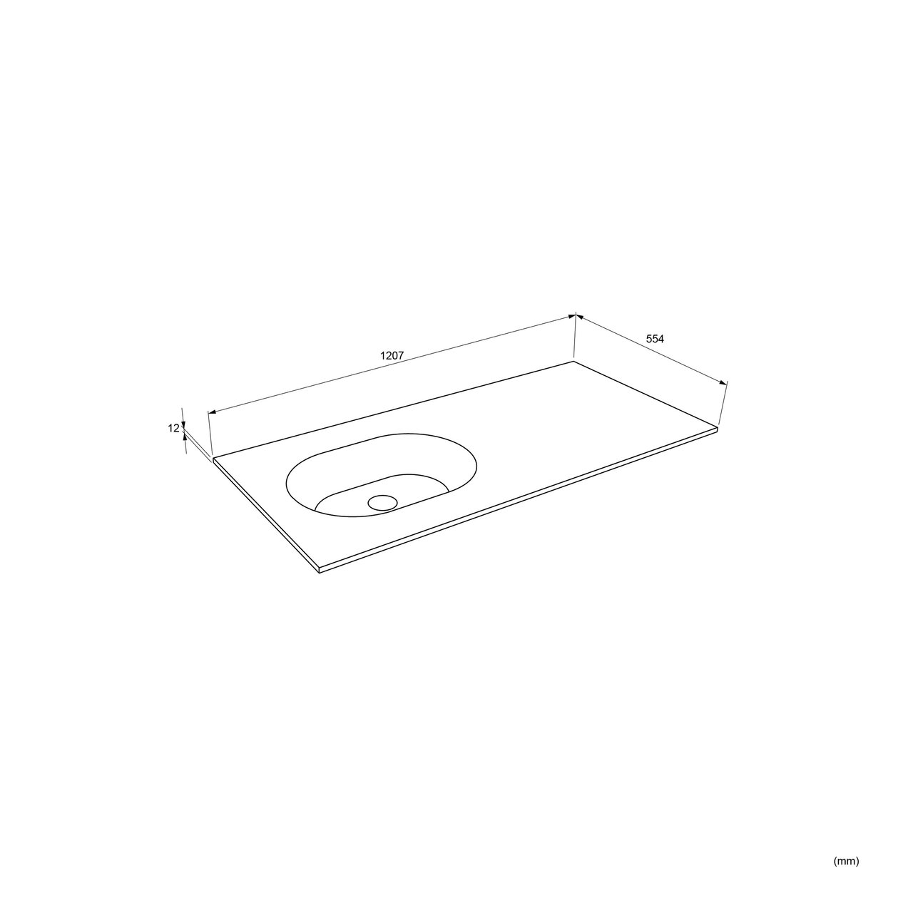 Dieser erstklassige, asymmetrische Waschtisch Solid Surface mit integriertem Waschbecken ist 120 cm breit, 55 cm tief und hat eine Randhöhe von 1,2 cm. In dekorativem Weiß matt ist dieser Waschtisch ein Blickfang in Ihrem Badezimmer.