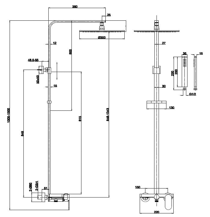 Verstellbereich der Duschstangbefestigung | 85 centimeter | |