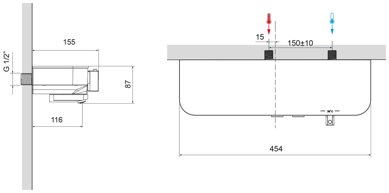 | Montage der Armatur | Wandmontage Aufputz | |