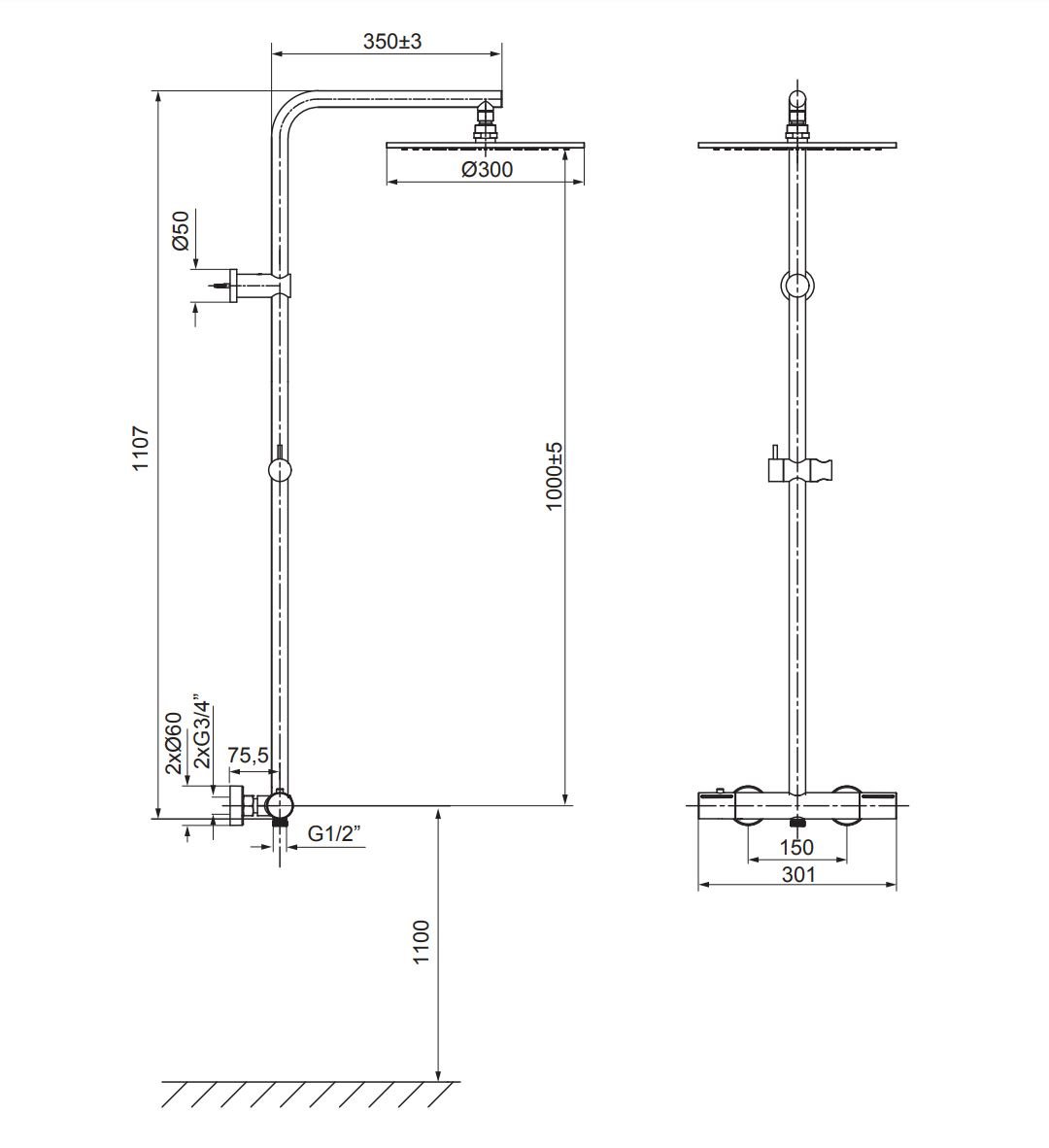 | Verstellbereich der Duschstangbefestigung | 70-100 centimeter | |
