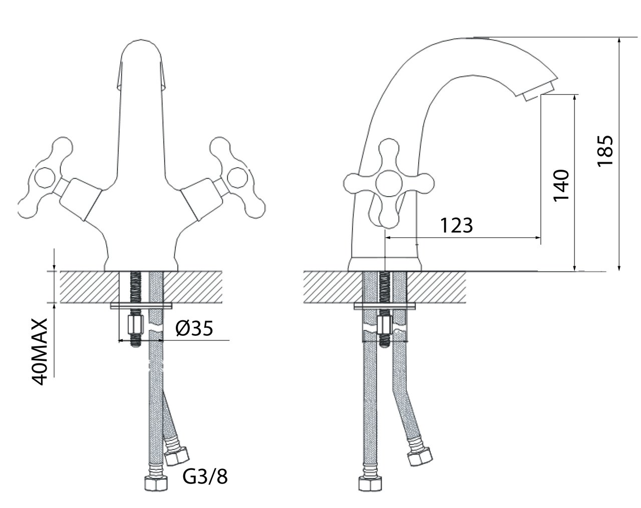 | Max. Plattestärke für die Armaturinstallation | 35 mm | |