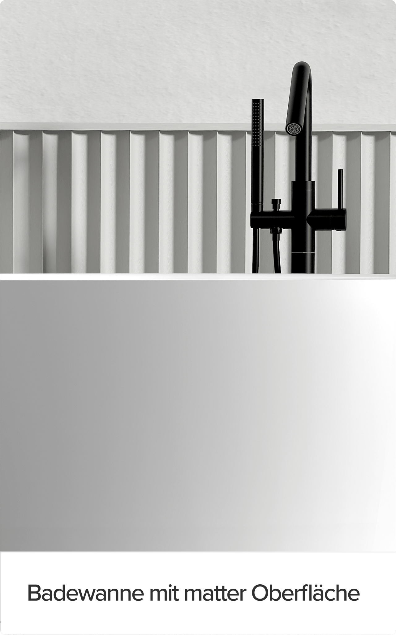 Wähle lieber eine halbfreistehende statt einer voll freistehenden Badewanne – das spart Platz und sieht trotzdem schick aus. Kein Platz für eine Badewanne? Dann ist eine Walk-In Dusche mit transparenter Glaswand ideal. Damit wirkt das Bad sofort heller und geräumiger.
