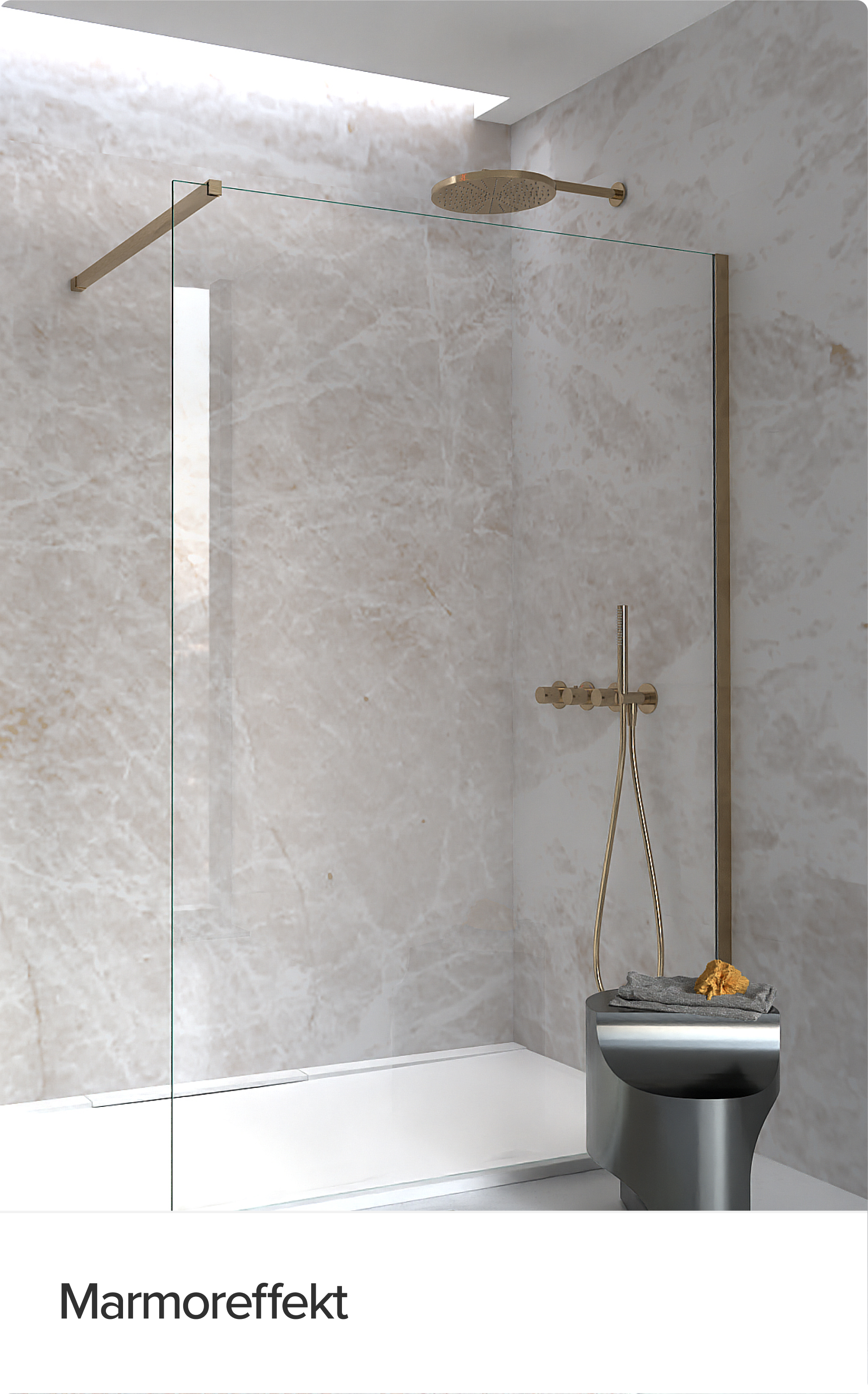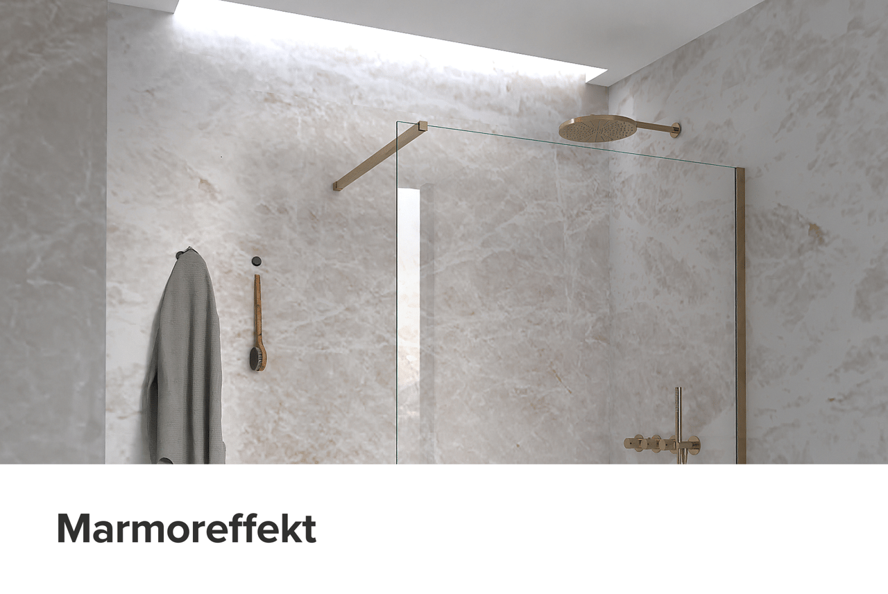 „Riffelglas oder Rauchglas in Deiner Walk-In Dusche verleihen dem Bad echten Hotel-Chic-Charakter.“