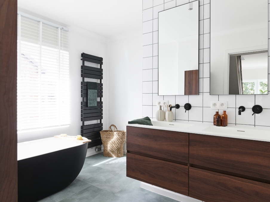 In diesem Blog geht es um einen natürlichen Mix aus Holz und Schwarz für Steven und Sofie, die Besitzer dieses schönen neuen Badezimmers!