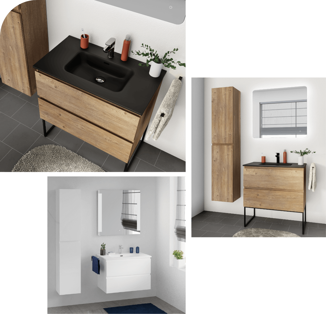 Im Badezimmer wird Melamin für Badezimmermöbel verwendet. Nachstehend kannst Du Dich inspirieren lassen und sehen, wie es aussieht. In der Möbelserie von Linie zum Beispiel ist alles aus Melamin gefertigt. Die beliebtesten Ausführungen? Eiche natur und weiß glänzend. Melamin ist auch das am häufigsten verwendete Material bei Storke.