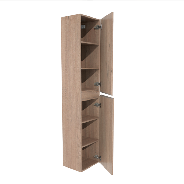 Wir liefern auch den stehenden Schrank vormontiert. Auch der Sockel, auf dem der Schrank selbst steht, ist bereits einwandfrei befestigt. Alles, was jetzt noch zu tun ist, ist den neuen Badezimmerschrank an der richtigen Stelle an der Wand zu platzieren! Im Anschluss sind die Schritte rundum das Waschbecken, die Armatur, den Spiegel und den Hochschrank vorzunehmen.