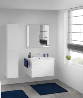 Linie Lado Badmöbel Set mit Baro WaschtischB60 cm x T46 cm | Waschbeckenunterschrank Weiß glänzend | Waschtisch in Weiß