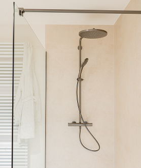 ✔ Schwarze Regendusche – Moderner Akzent zu sanften Farben.