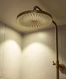 ✔ Goldene Details – Messingarmaturen setzen edle Highlights.
