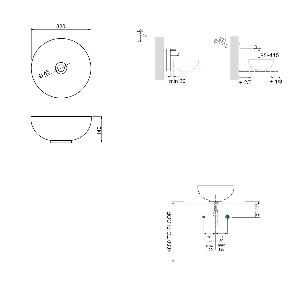 Dieses Waschbecken aus Porzellan hat einen Durchmesser von 32 cm und eine Höhe von 14 cm. Dieses hochglänzend weiße Waschbecken passt durch seine elegante ronde Form in jedes Badezimmer.