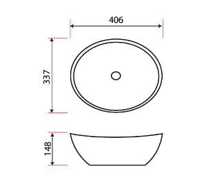 Dieses Waschbecken aus Porzellan ist 40,5 cm lang, 34 cm breit und 15 cm hoch. Dieses schwarz matte Waschbecken passt durch seine organische ovale Form in jedes Badezimmer.