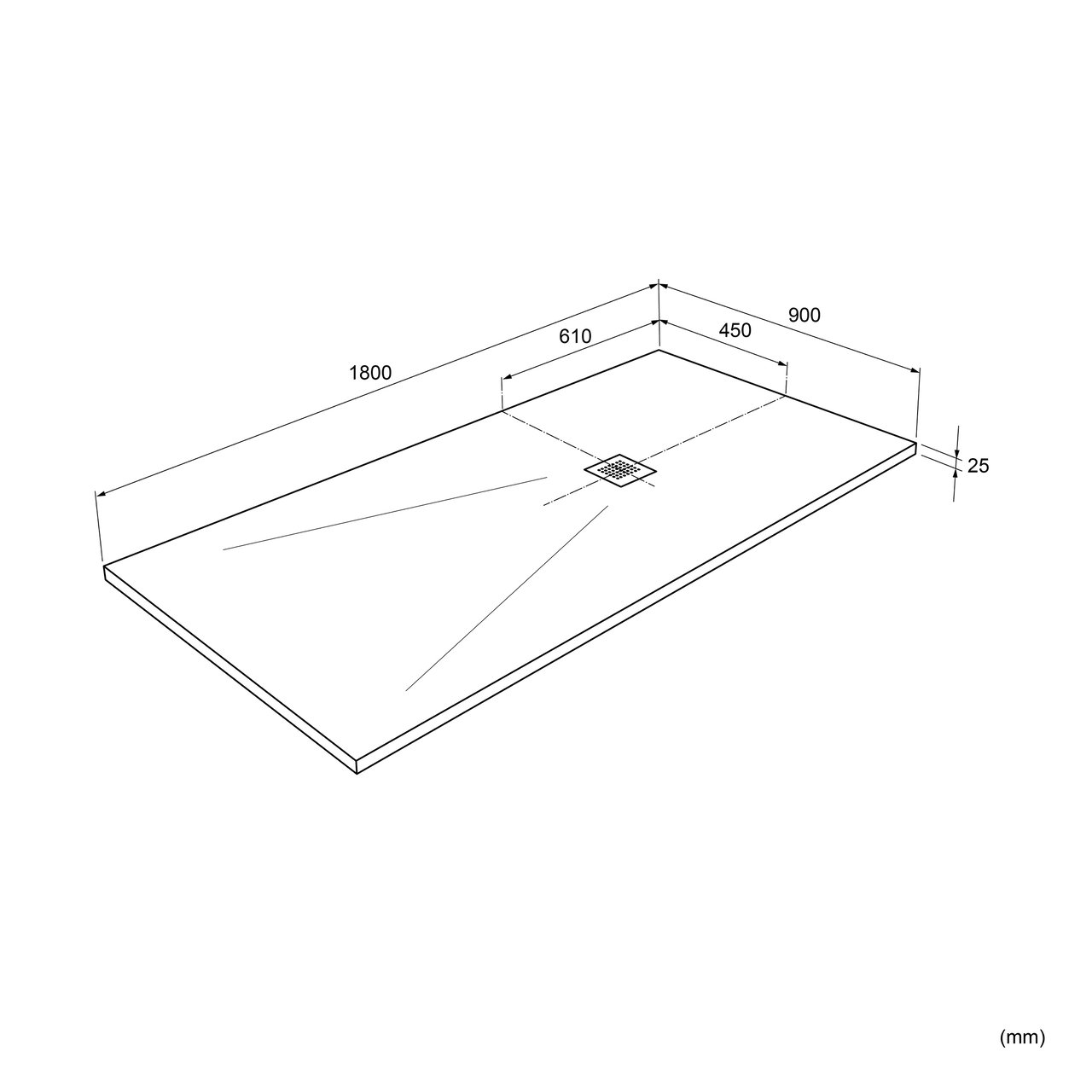 Diese Duschtasse ist 90 cm breit und 180 cm lang.
