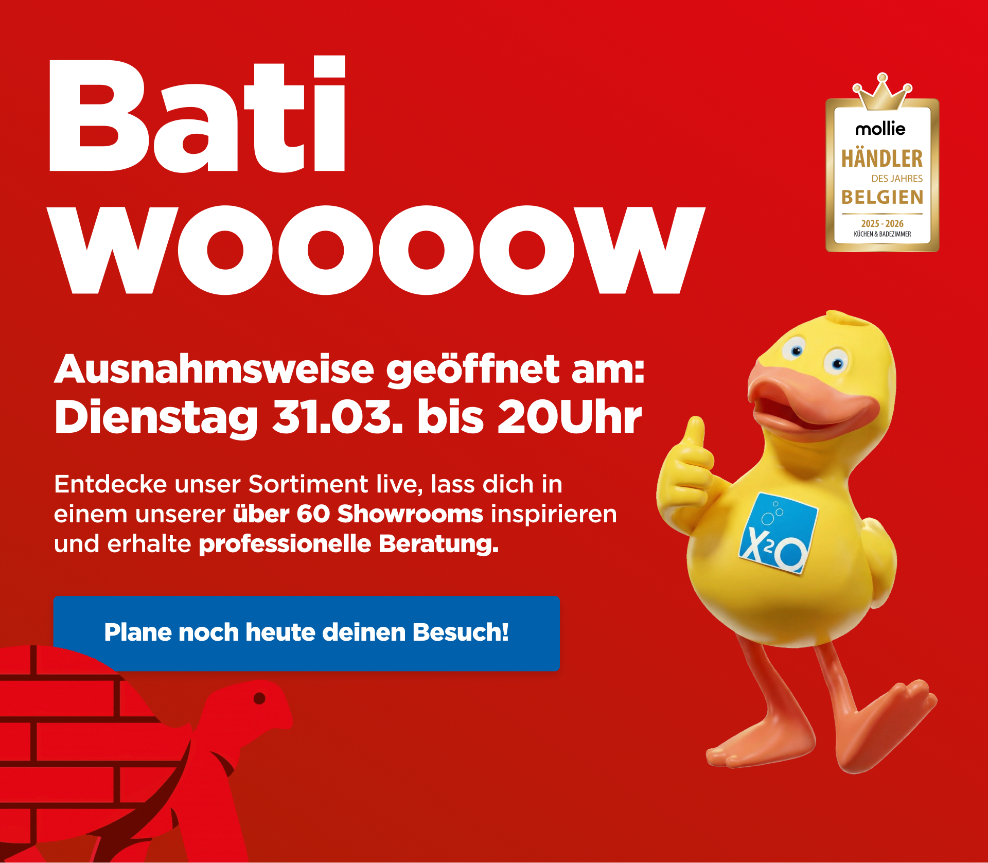 Suchst du ein neues komplettes Badezimmer oder möchtest du dein aktuelles Bad renovieren? Bei X²O Badezimmer findest du eine große Auswahl an Sanitärartikeln und Badezimmermöbeln, die zu jedem Stil und Budget passen. Lass dich in unseren Showrooms inspirieren und entdecke die Möglichkeiten für dein Traumbad. X²O, der Badezimmerexperte, ist in Belgien, den Niederlanden, Frankreich und Deutschland – mit über 60 Badausstellungen. So findest du immer ein X²O-Badezimmerausstellung in deiner Nähe.