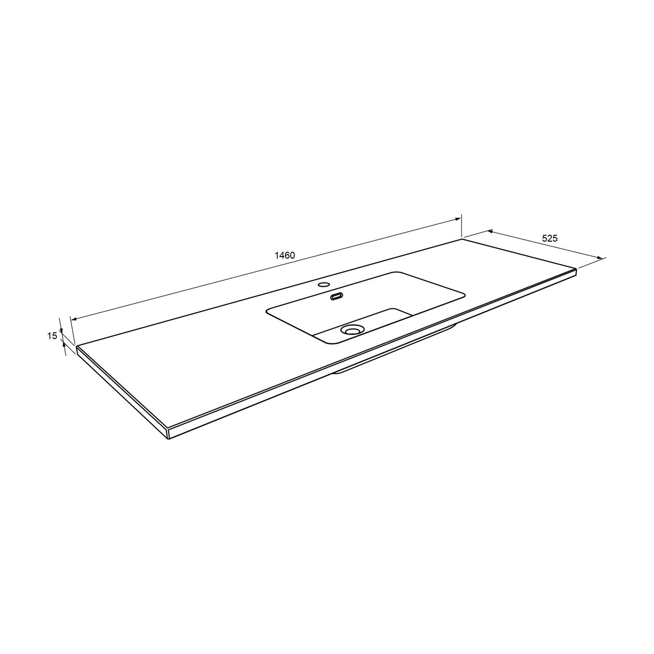 Dieser Waschtisch aus Marmorkomposit mit integriertem Aufsatzbecken ist 135 cm breit, 52 cm tief und hat eine Randhöhe von 1,5 cm. Dieser glänzend weiße Waschtisch zeichnet sich durch ein minimalistisch-zeitgemäßes Design aus, mit dem er sich nahtlos in jedes Badezimmer einfügt.
