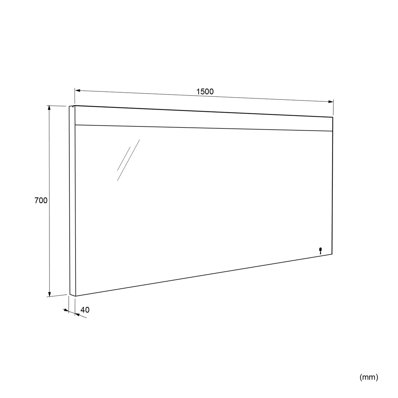 Diese rechteckige Spiegel hat eine Breite von 150 cm und eine Höhe von 70 cm.Der Spiegel mit Beleuchtung passt mit seiner geradlinigen Ausstrahlung in jedes Badezimmer.