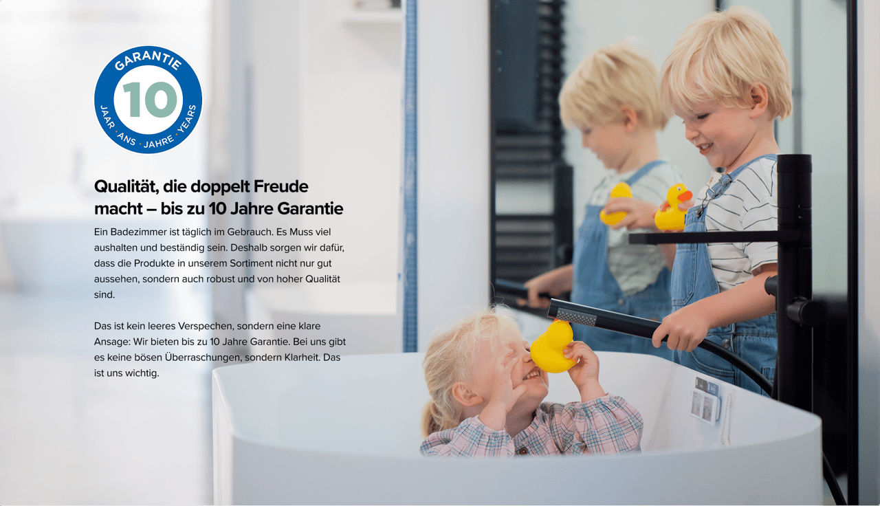 Dank unserer cleveren Herangehensweise, ohne Zwischenhändler und mit effizienten Prozessen, bekommst du bei uns sooo gute Preise. Statt mehr zu bezahlen gibt es bei X²O Badezimmer mehr Qualität, mehr Stil und mehr Bad. Behalte unsere Sonderangebote im Auge, wenn du noch mehr sparen willst.