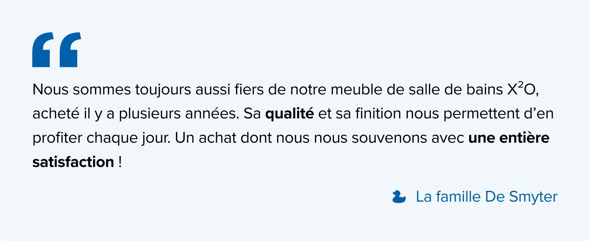 Il y a vingt ans que l’histoire de X²O Salles de bains a commencé. Aujourd’hui, les bureaux sont établis à Gand et X²O salles de bains compte plus de 60 showrooms répartis dans quatre pays, des millions de clients satisfaits et, depuis quelques années, une mascotte joyeuse qui nous accompagne partout : Ducky.