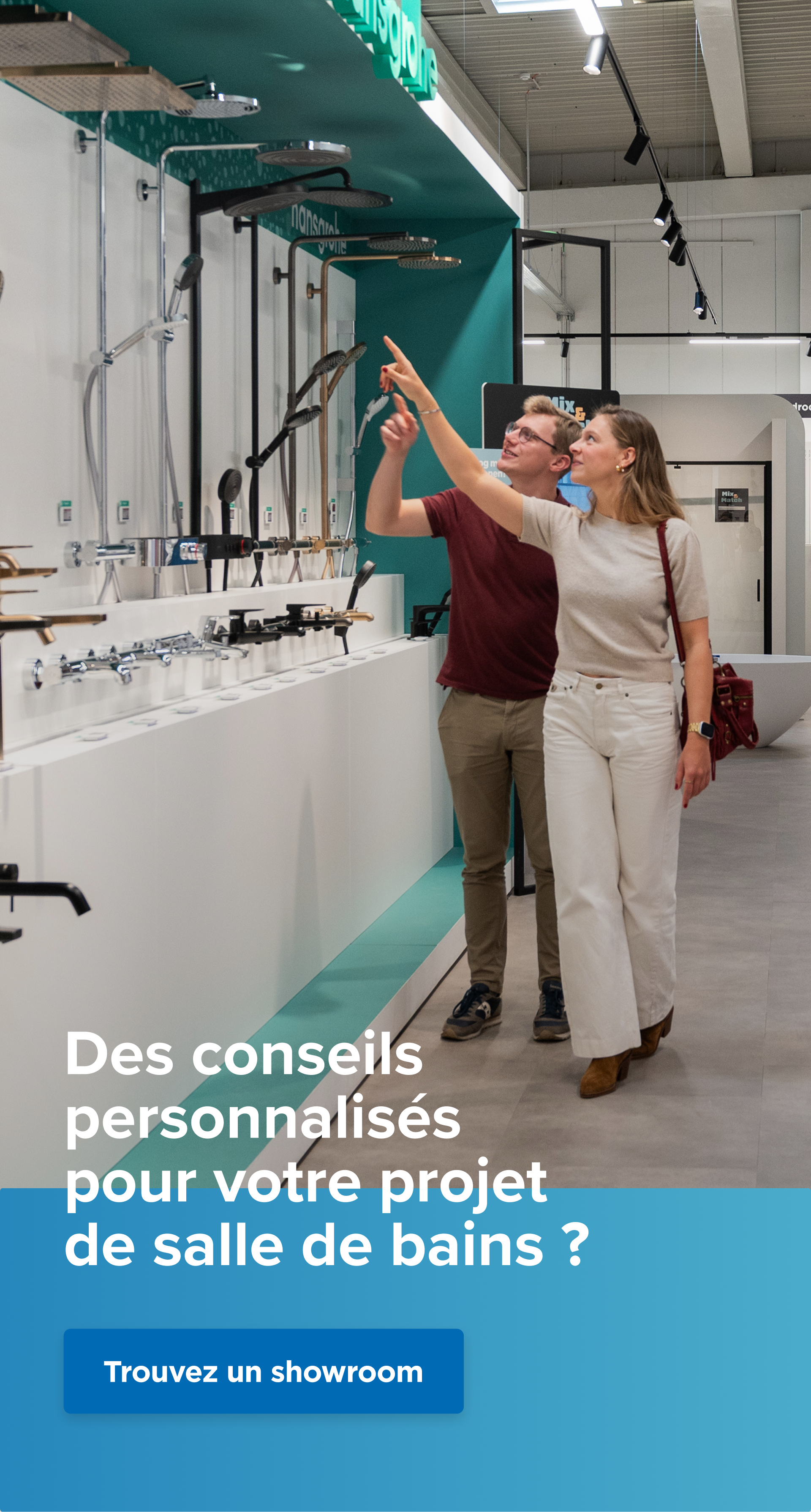 Besoin d'inspiration supplémentaire ? Dans nos showrooms, vous trouverez divers exemples. Ou consultez comment les étagères murales sont présentées dans notre inspiration en ligne pour salle de bain.