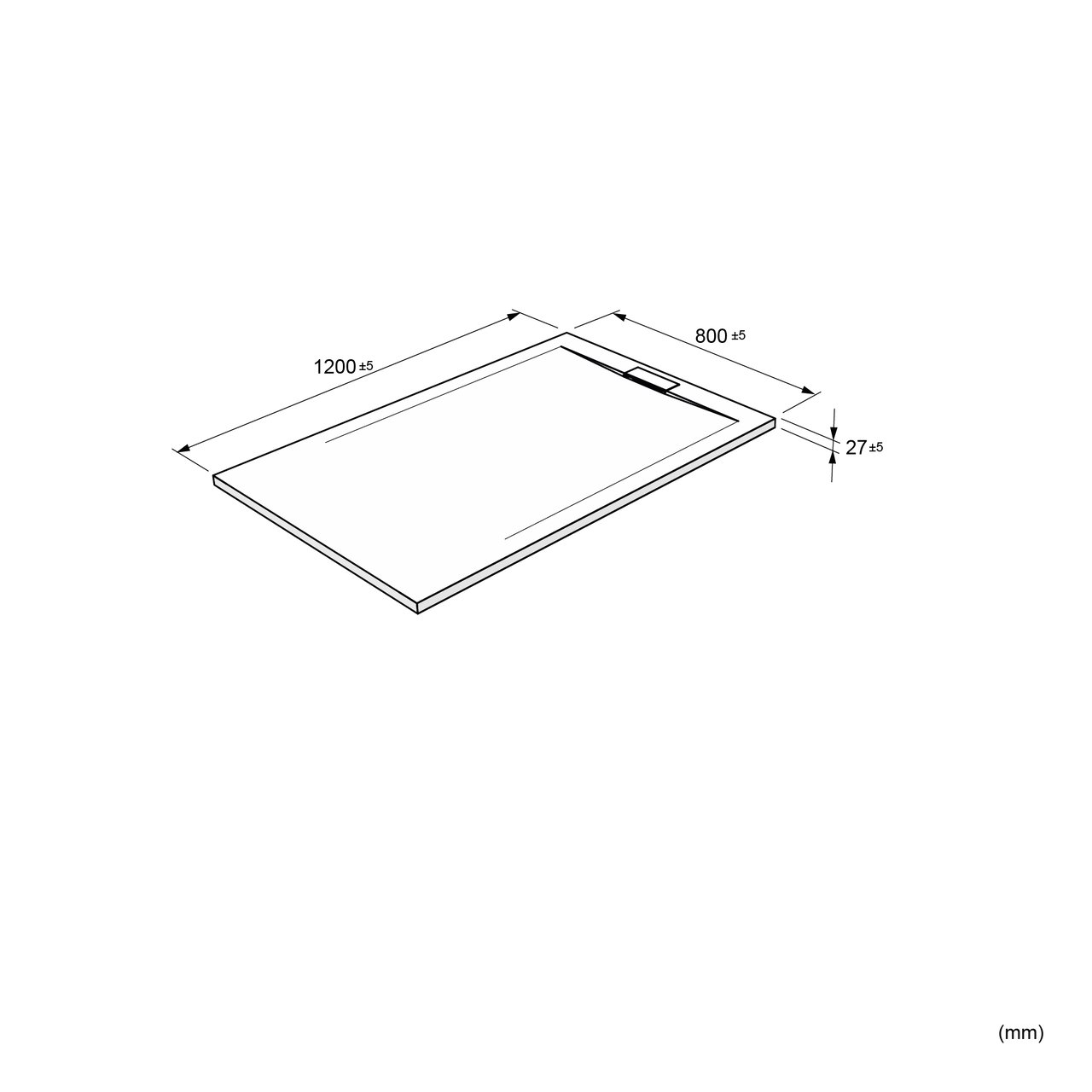 Ce receveur de douche mesure 80 cm de large et 120 cm de long.