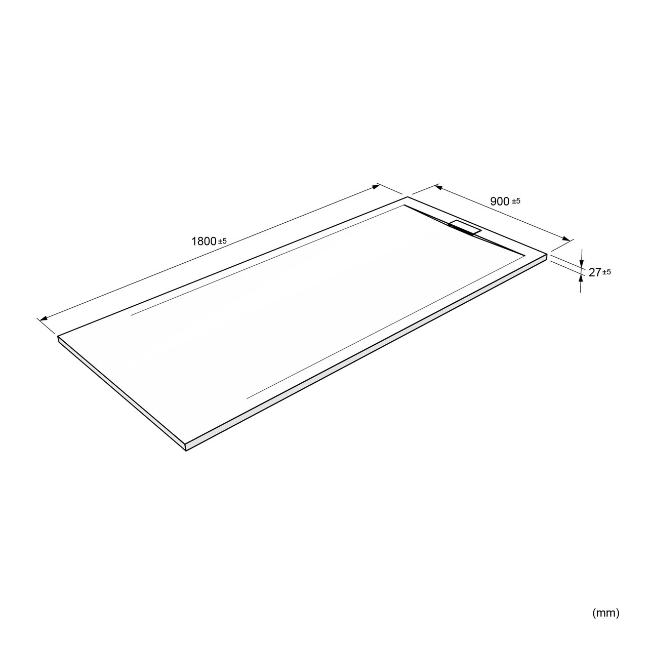 Ce receveur de douche mesure 90 cm de large et 180 cm de long.
