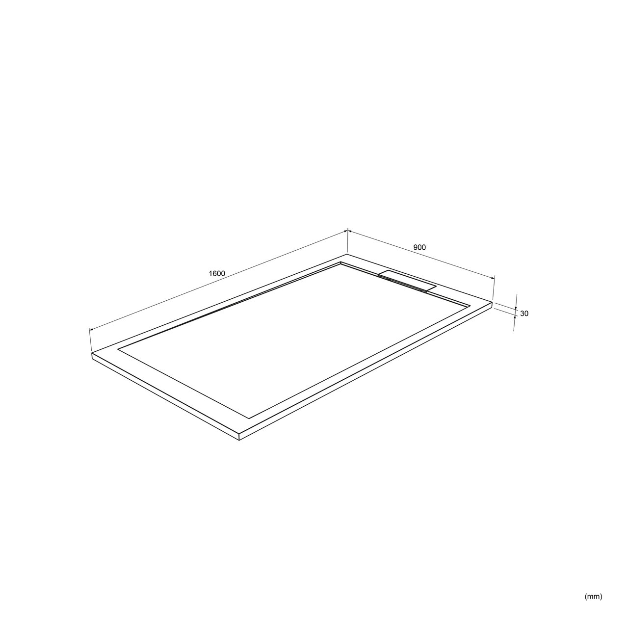 Ce receveur de douche mesure 90 cm de large et 160 cm de long.