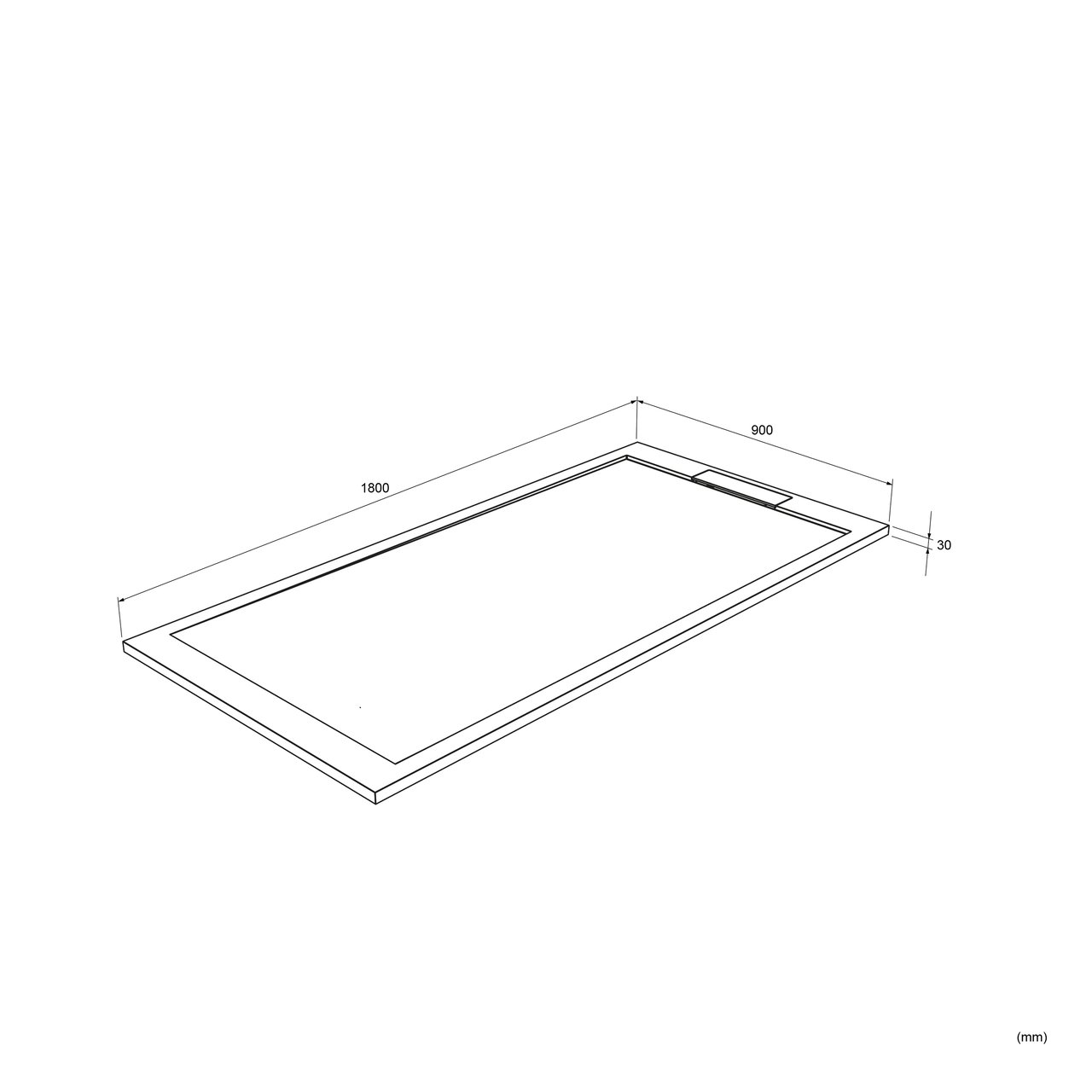 Ce receveur de douche mesure 90 cm de large et 180 cm de long.