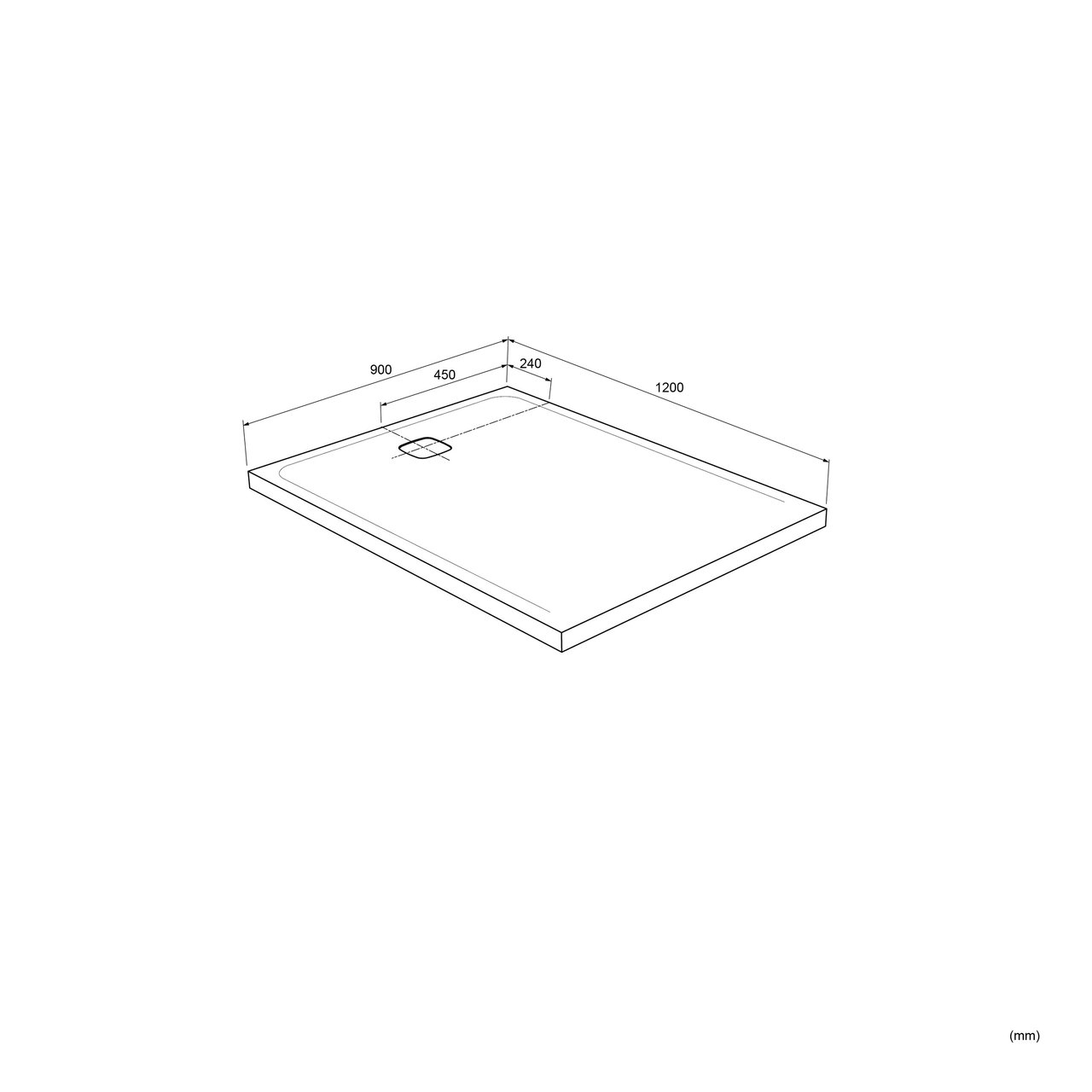 Ce receveur de douche mesure 90 cm de large et 120 cm de long.