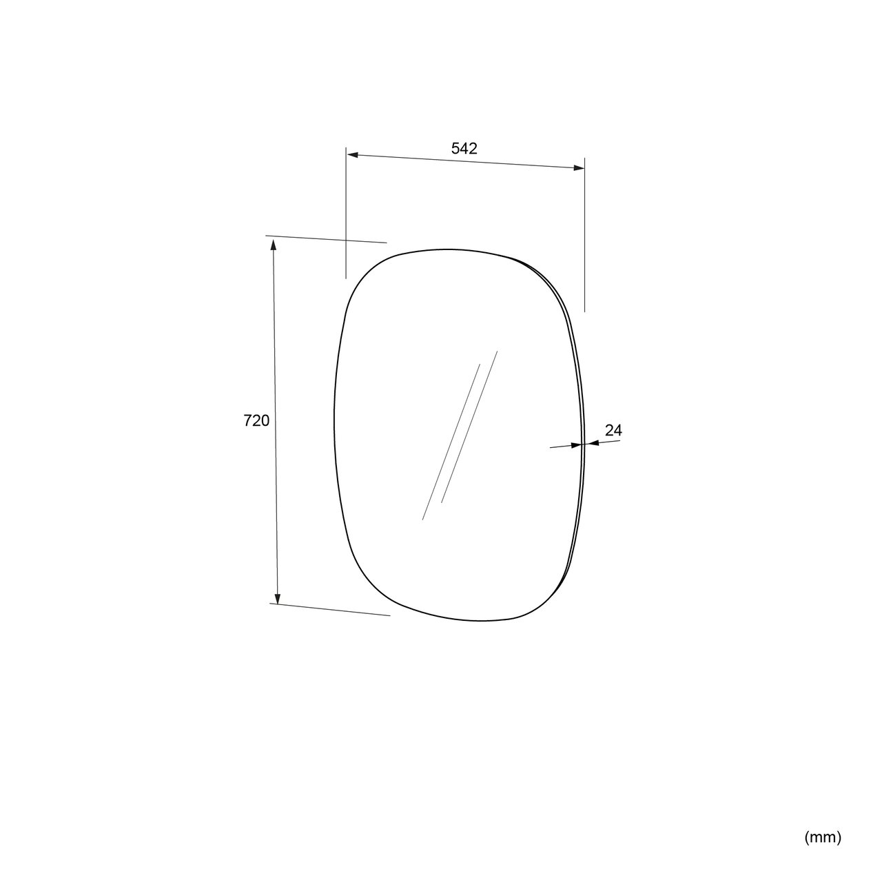 Ce panneau de miroir organique de qualité supérieure a une largeur de 54 cm et une hauteur de 72 cm. Le miroir avec éclairage s'intègre dans n'importe quelle salle de bains grâce à son aspect épuré.