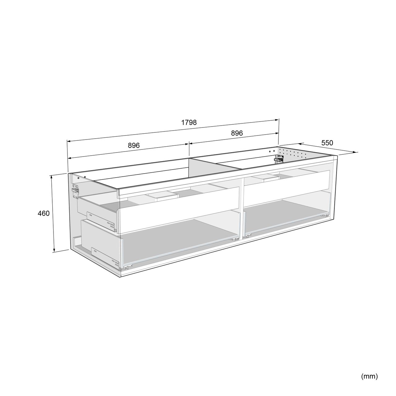 Conseil de sécurité: un profilé de soutien Santeg est fortement recommandé pour une installation parfaite et pour soutenir de manière optimale l'armoire suspendue.
