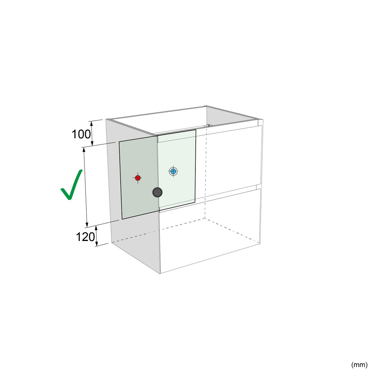 Conseil de sécurité : un profilé de soutien Santeg est fortement recommandé pour une installation parfaite et pour soutenir de manière optimale l'armoire suspendue.