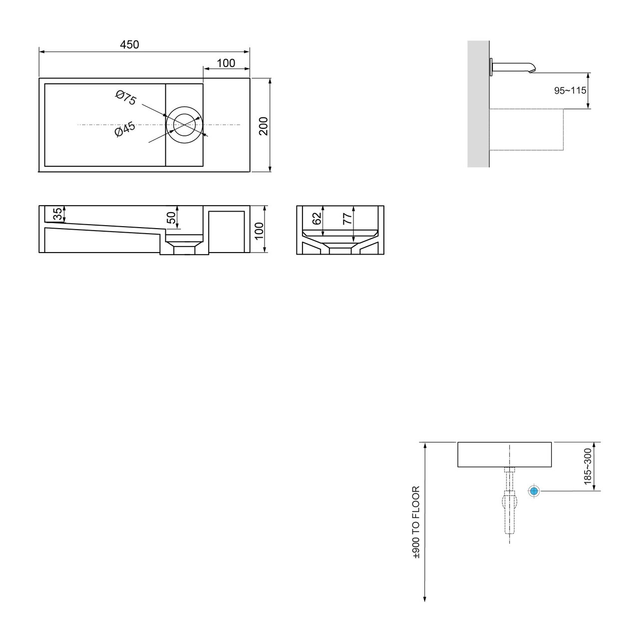 Conseil de sécurité : vous avez besoin d'un drain pour que le lave-mains fonctionne parfaitement. N'oubliez pas de commander votre foret si vous optez pour un robinet de lavabo.