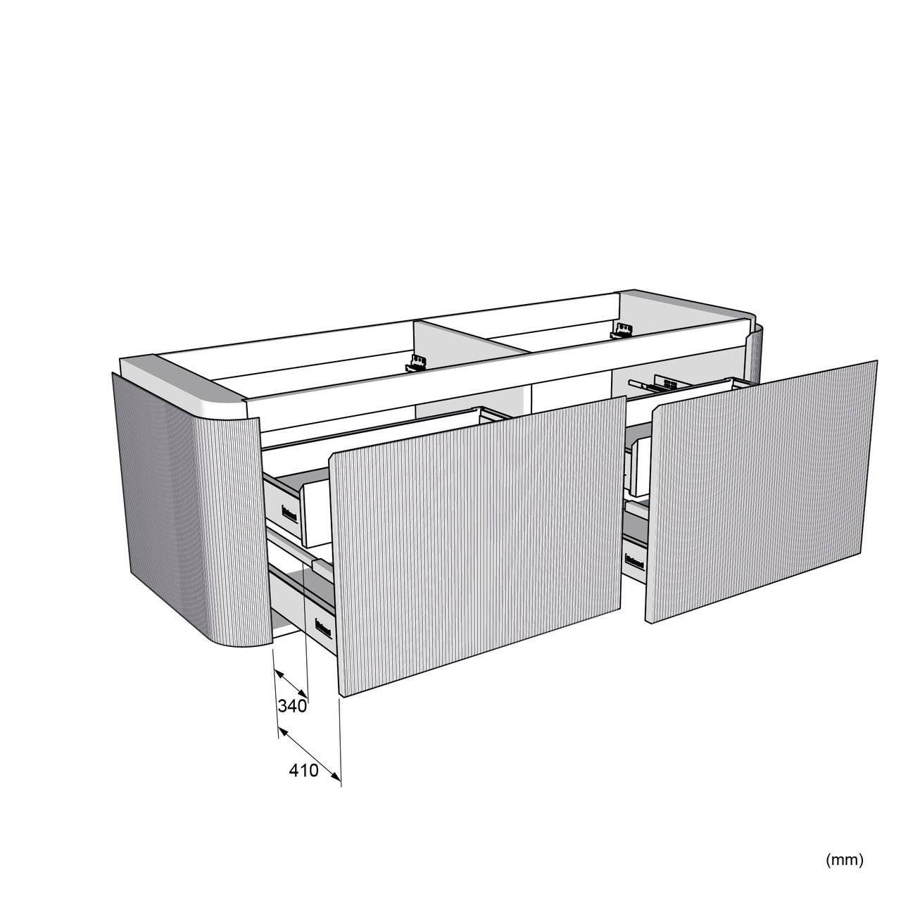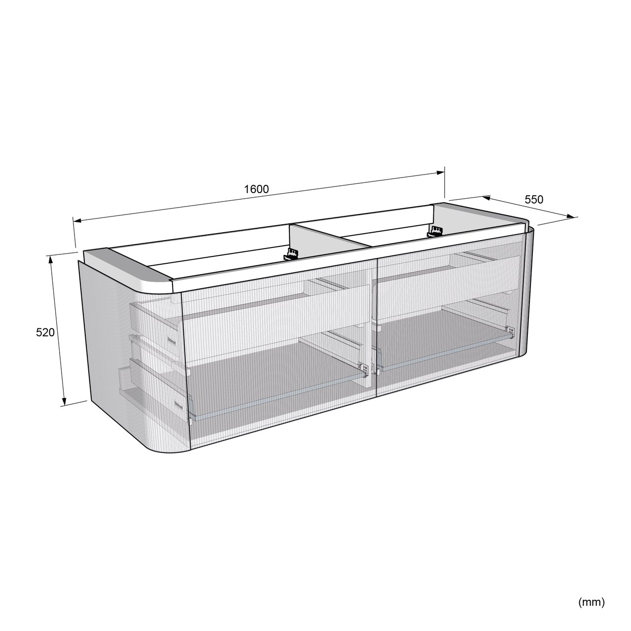 Le meuble de salle de bains fait 160cm de large et il est fabrique en MDF laqué.