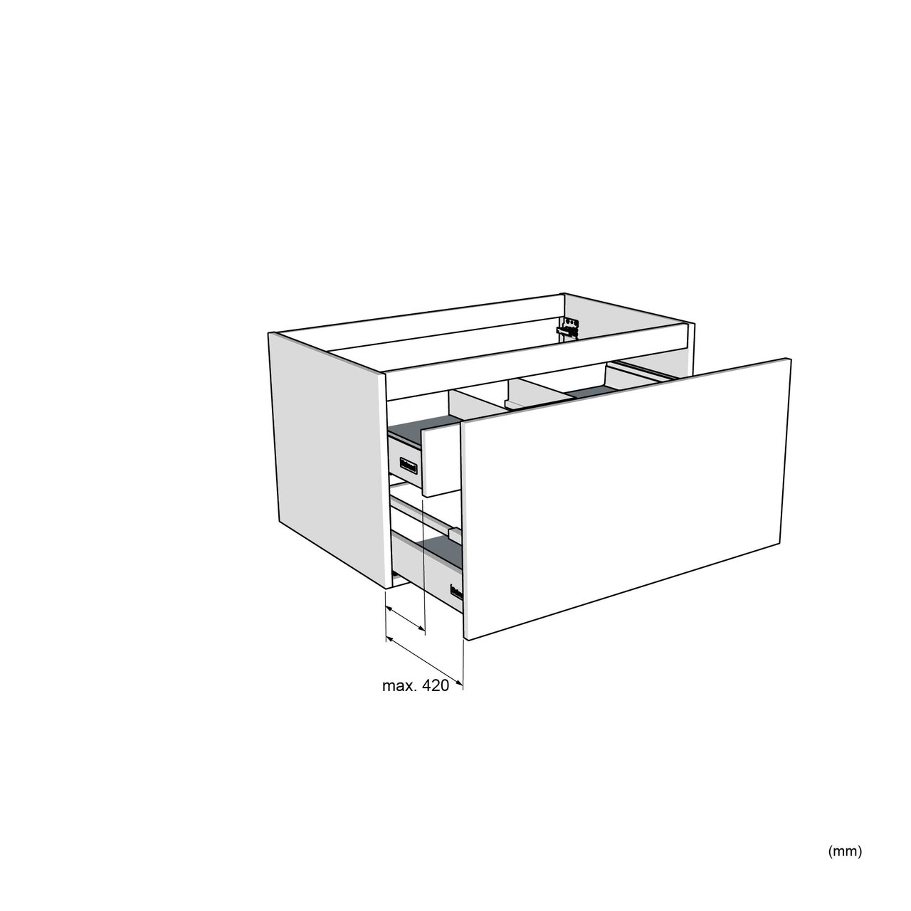 - Les faces avant des tiroirs sont intégrées à l'armoire avec pour résultat un aspect pur et élégant.