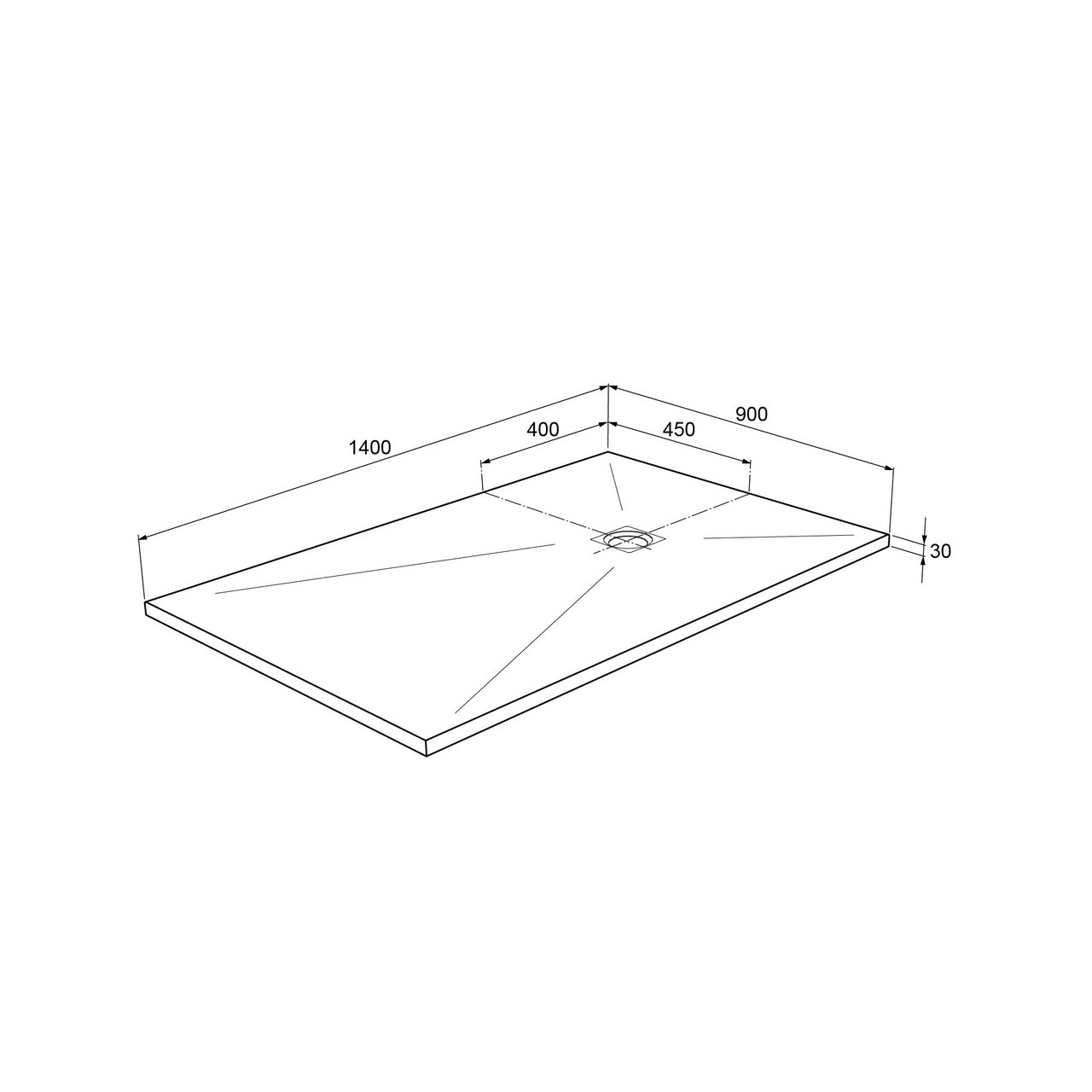 Ce receveur de douche mesure 90 cm de large et 140 cm de long.
