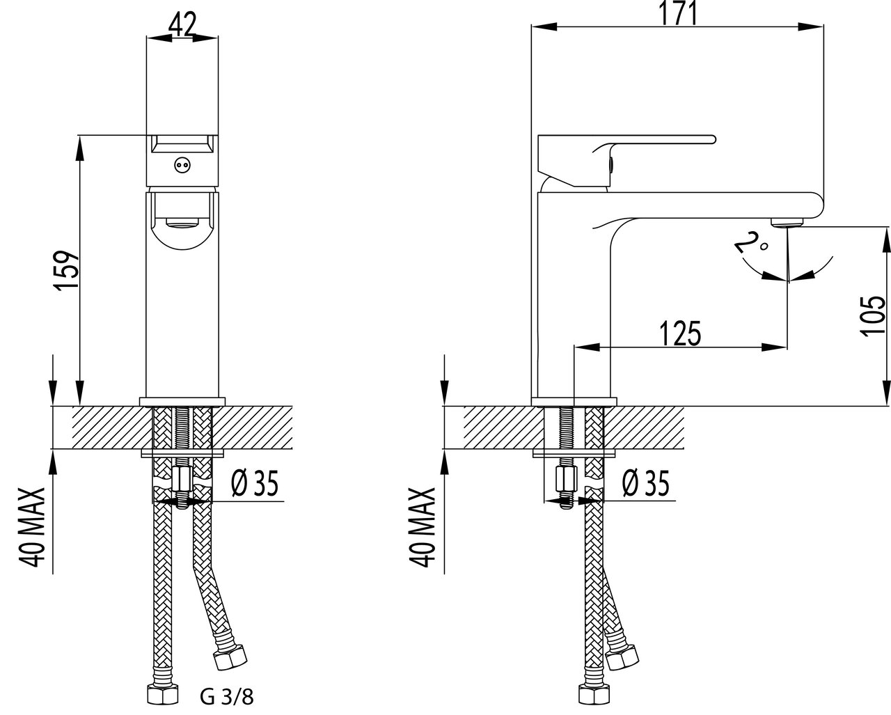 Épaisseur maximale de tablette pour l'installation du robinet | 40 mm | |