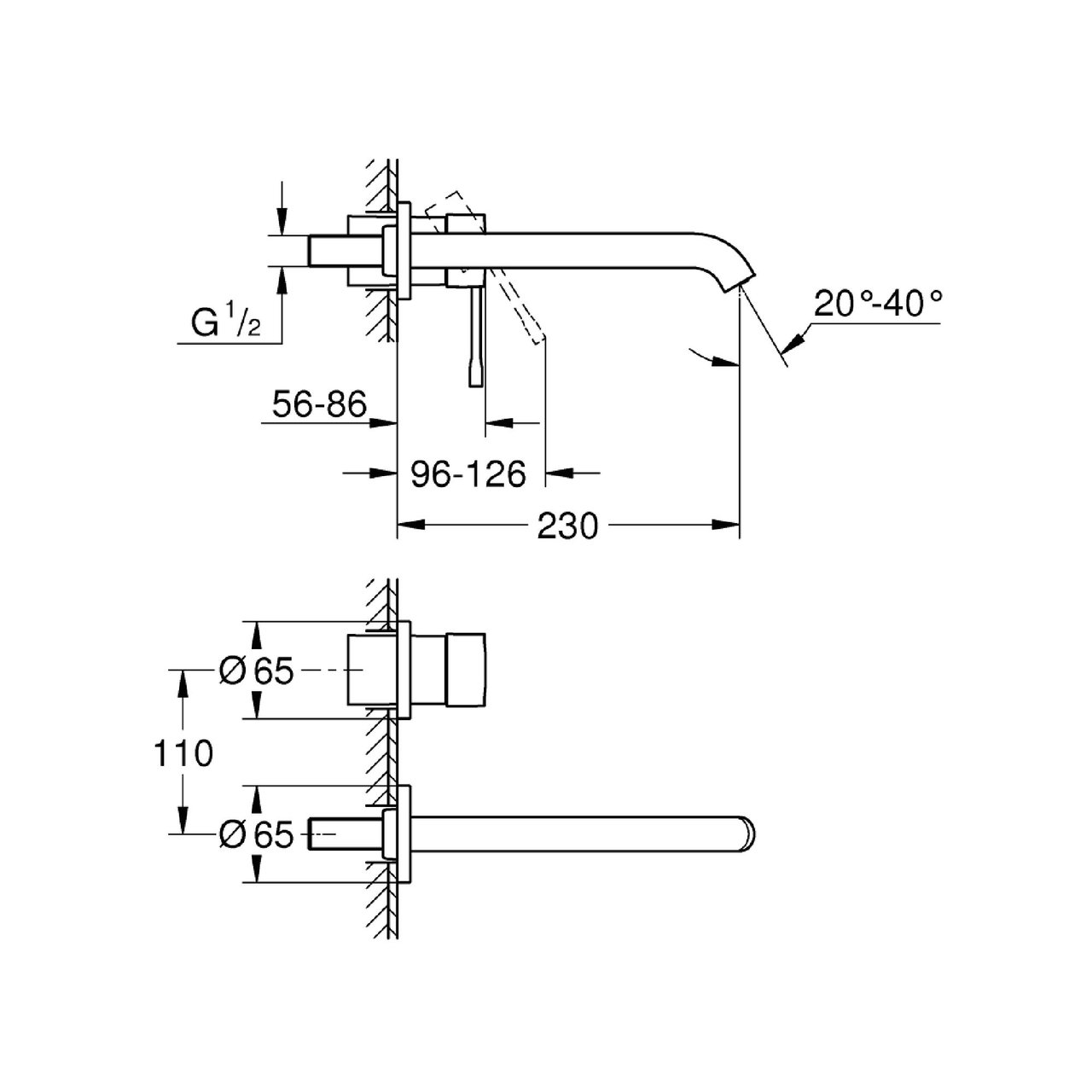 | Longueur trop-plein (voir dessin à l'échelle) | 230 mm | |