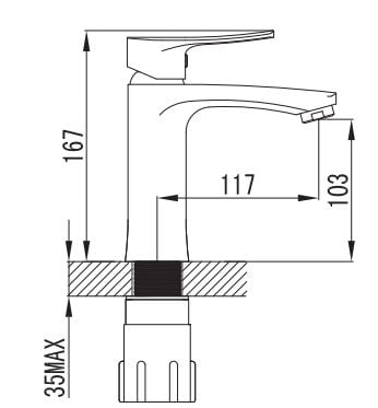 | Épaisseur maximale de tablette pour l'installation du robinet | 35 mm | |