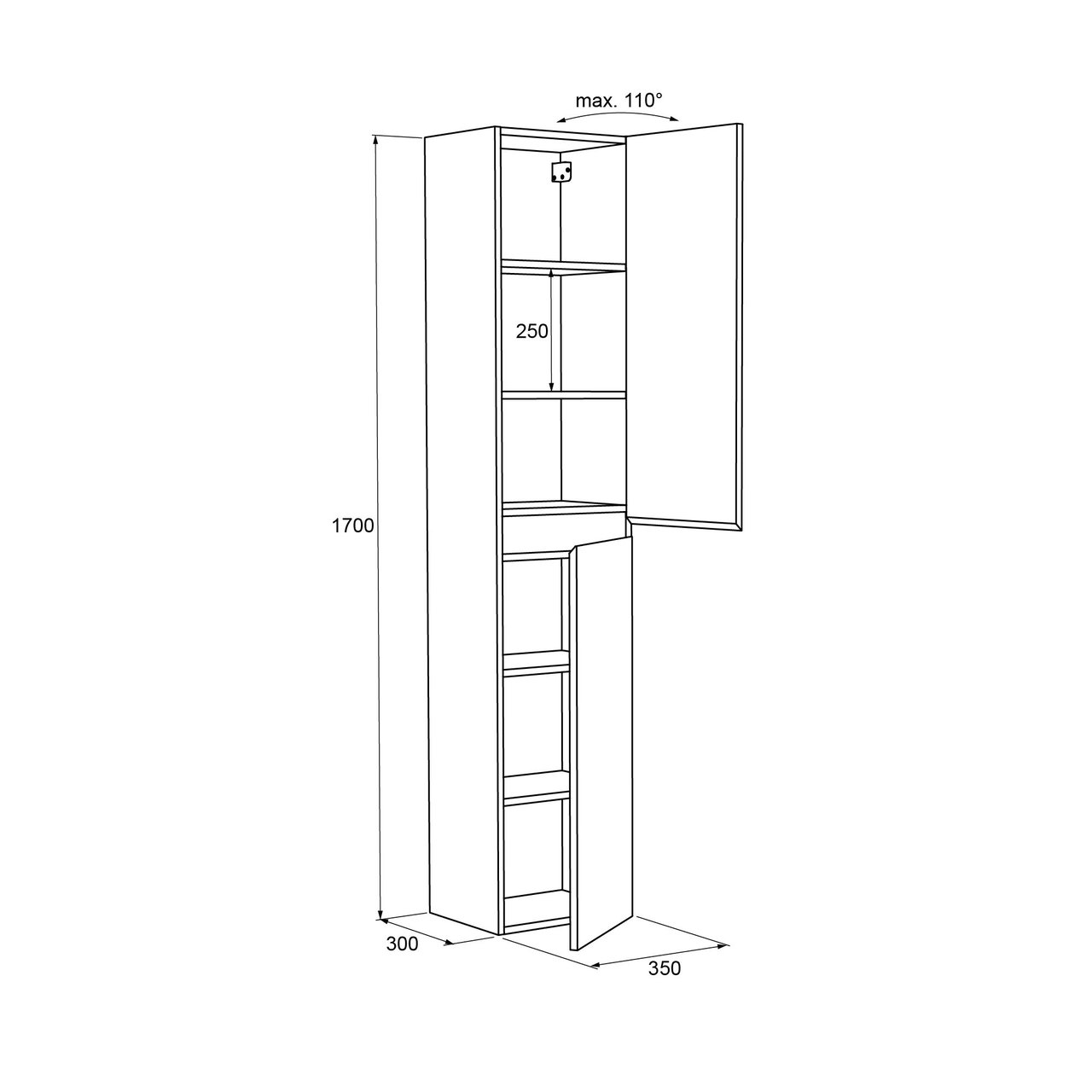 Cette superbe armoire de salle de bains en mélaminé avec 2 portes a une largeur de 35 cm, une hauteur de 170 cm et une profondeur de 30 cm. Cette armoire suspendue en chêne gris s'intègre dans toute salle de bains grâce à sa finition épurée.
