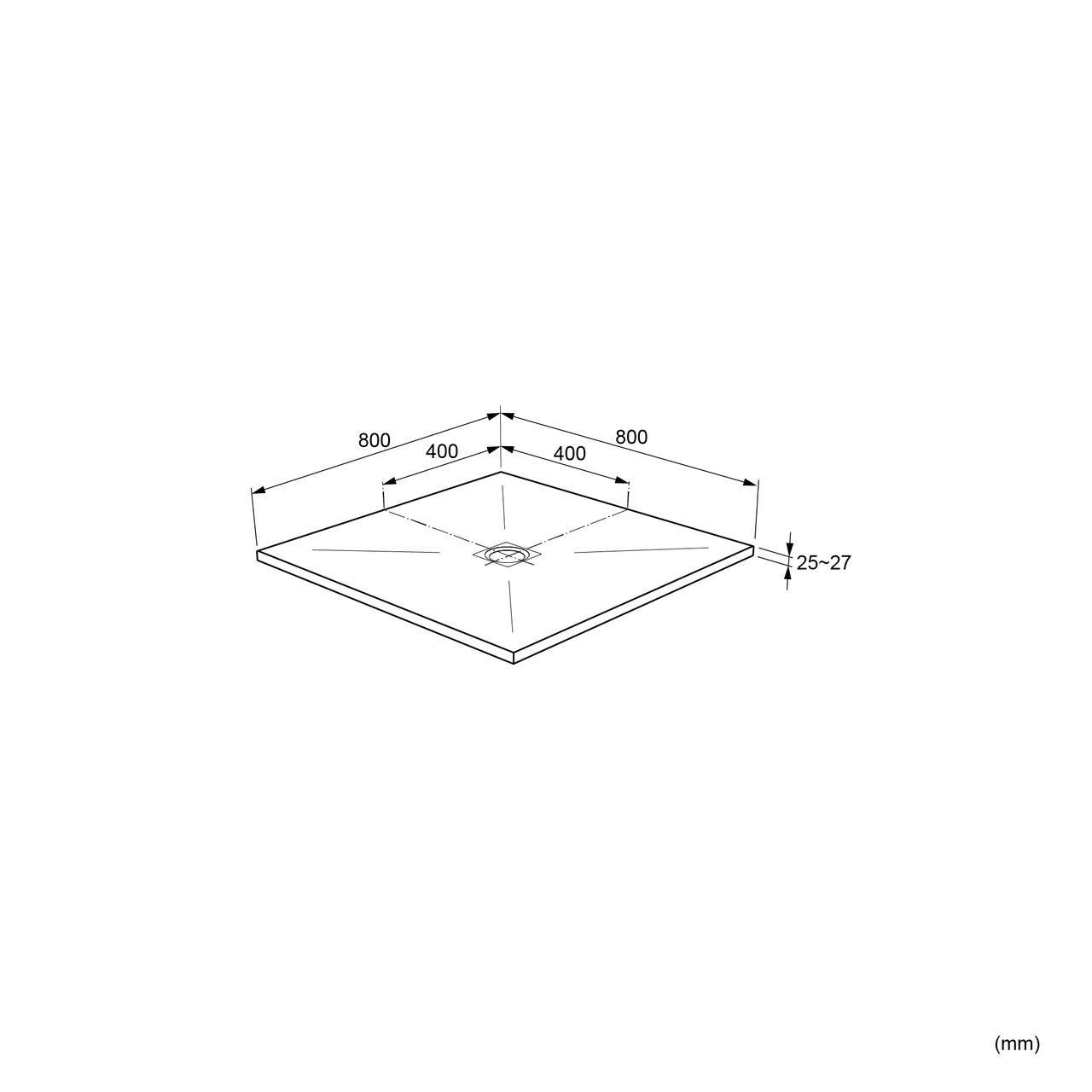 Ce receveur de douche mesure 80 cm de large par 80 cm de long.